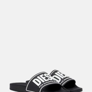 Description Product description These pool slides are styled with moulded footbeds and gripped logo soles. The wide upper band is branded with a 3D Diesel For Successful Living logo and trim. ID: Y02801P4441