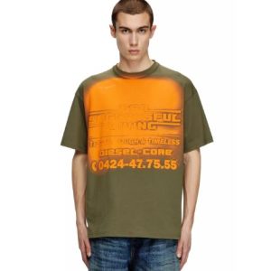 Description Product description Short-sleeve T-shirt featuring a crew neck and a relaxed fit. Made from cotton-blend jersey, it has a burnout washed effect for a distinctive lived-in look. The design is enhanced by a sublimation print with studs on the front, while the Diesel logo stands out at the top.