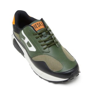 These men’s sneakers offer a contemporary spin on a timeless running silhouette. Equally about lifestyle and comfort, they have breathable mesh uppers with suede and grained PU overlays and sizeable D logos hallmarking the sides – a smaller version of the branding marks the back of the shoe. The lightweight EVA and rubber soles provide a cushioned step and grip.