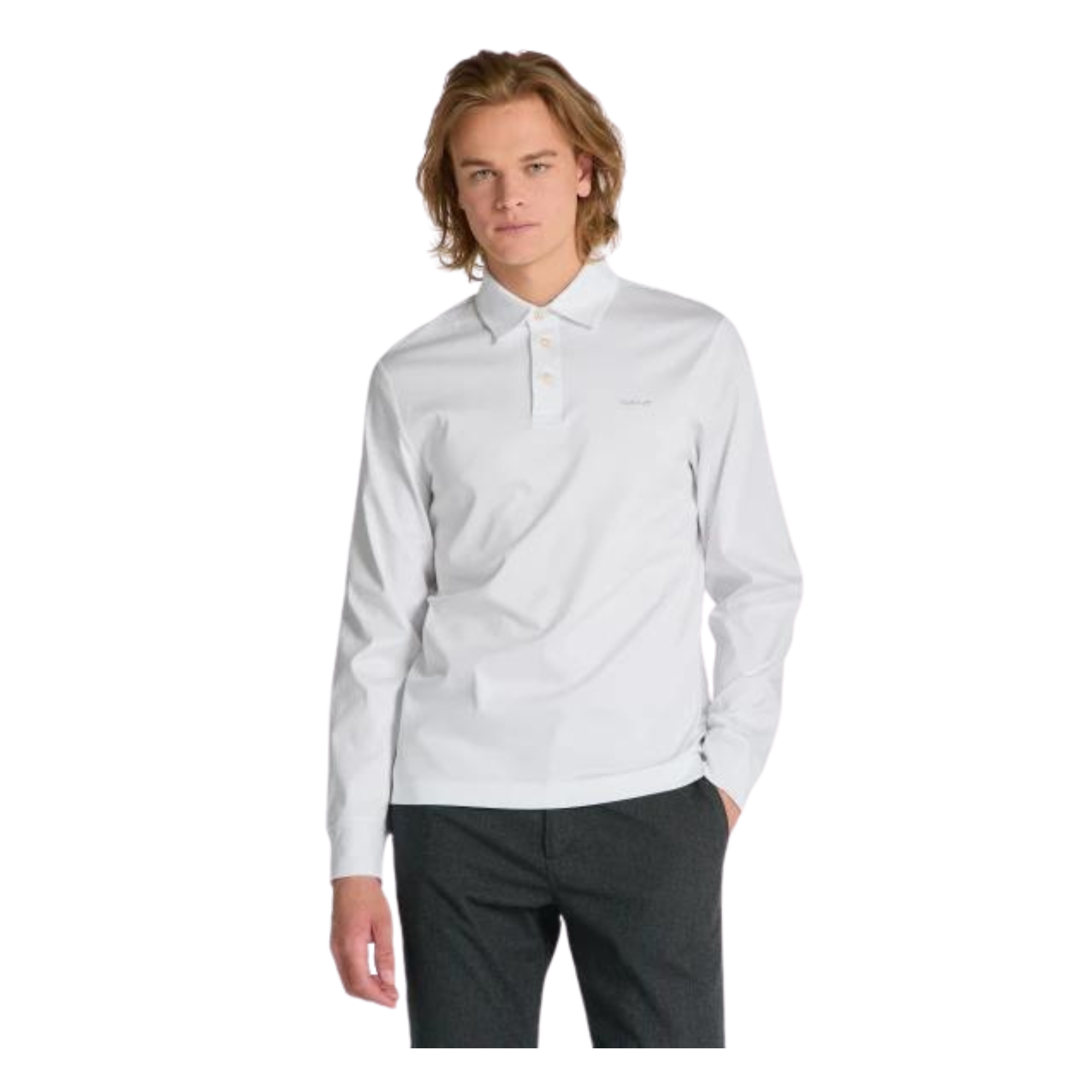 Men’s polo shirt with a straight cut and long sleeves. Embroidered branding on the chest, elegant three-button placket fastening. The material composition consists of smooth, pleasantly soft jersey, which stands out for its durability and perfect breathability. The high-quality cotton fiber has been modified in a unique way, thanks to which the knitted fabric stands out with its premium properties and at the same time a soft shine, which makes the article a tasteful and, above all, very comfortable alternative to a casual shirt.