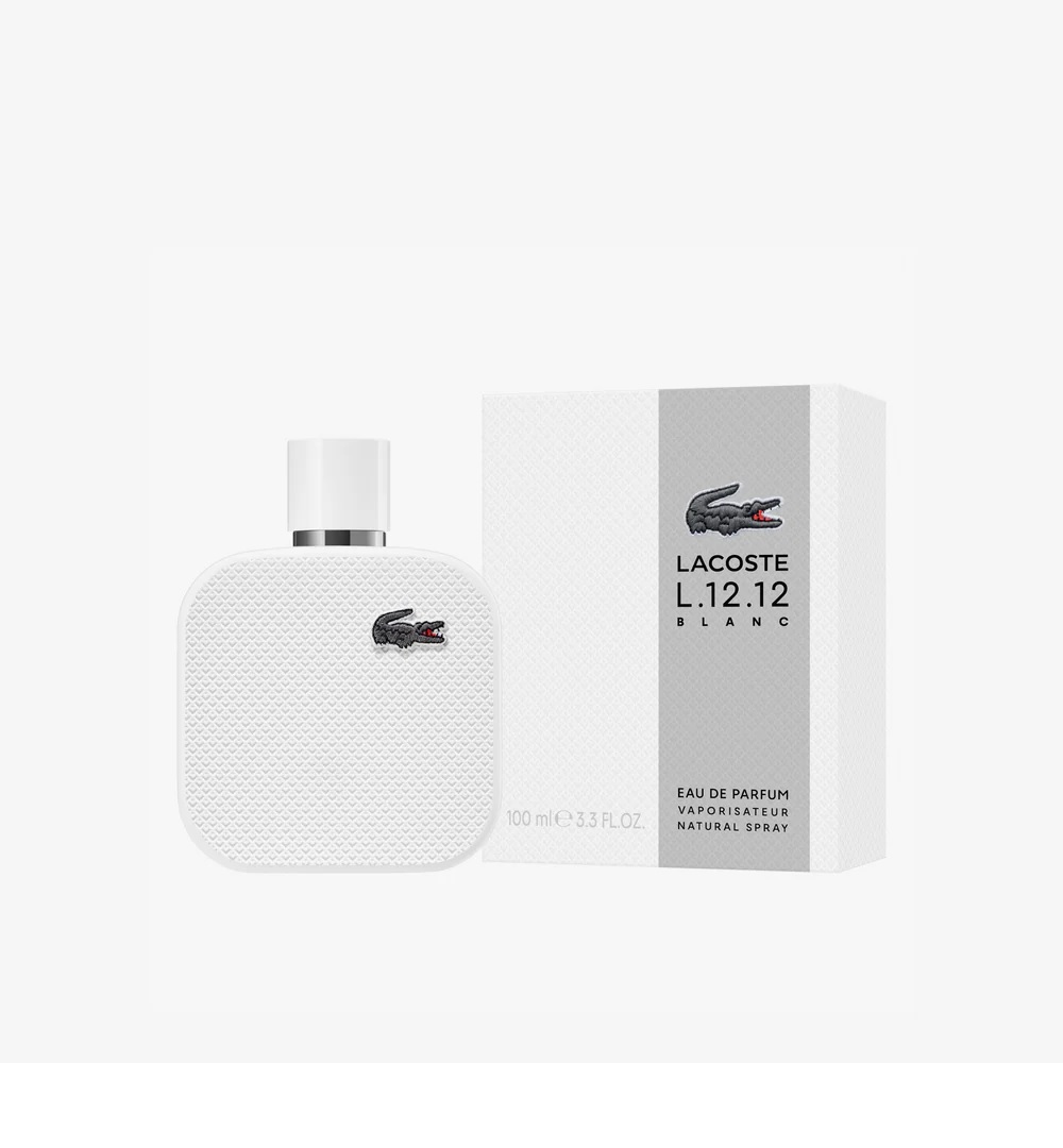 L.12.12 Blanc Eau de Parfum, inspired by the iconic Lacoste polo shirt, is a bold, masculine fragrance with a woody aromatic scent. Zesty finger lime and eucalyptus essence blend with powerful pine and cedarwood, creating an intense impression of comfort.The bottle and outer pack feature our iconic ‘petit piqué’ pattern, inspired by the texture of our polo shirts. The more intense, concentrated Eau de Parfum features a distinguishing dark grey embroidered crocodile patch.