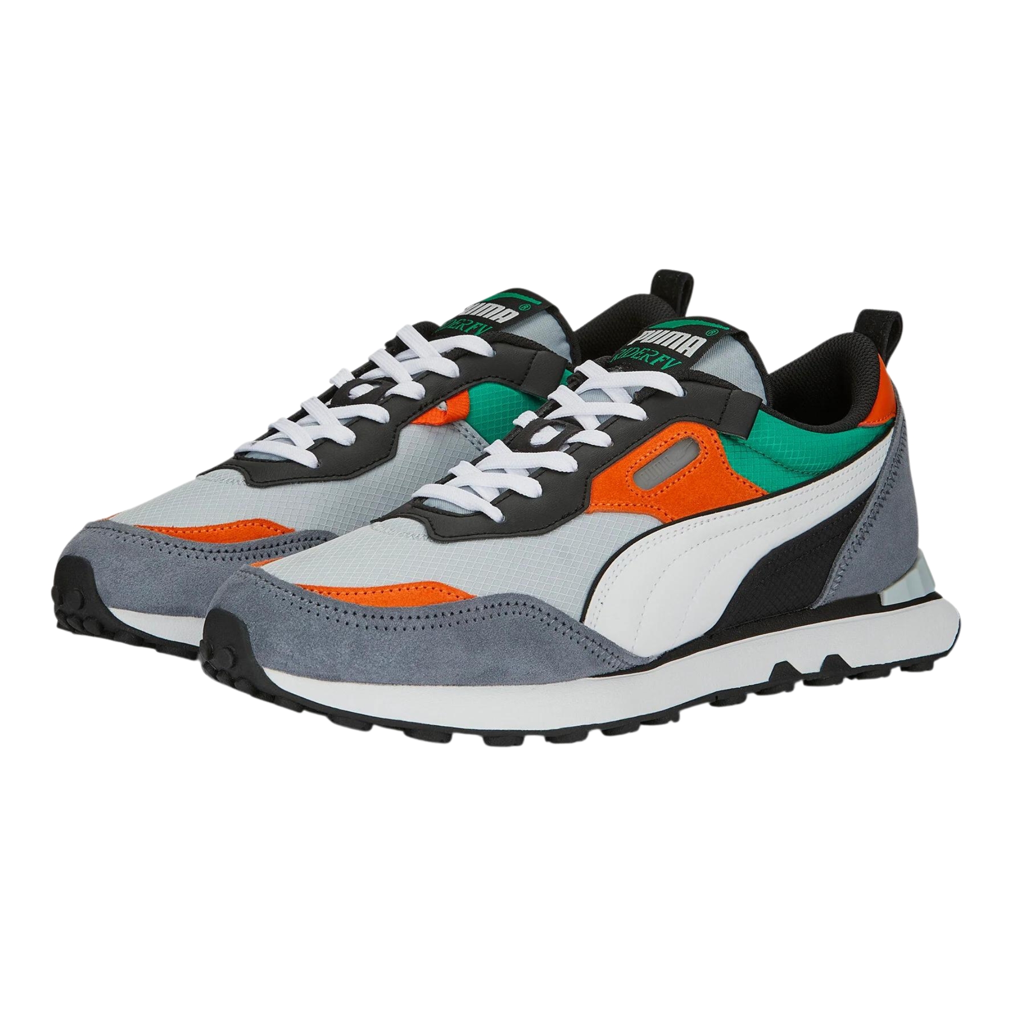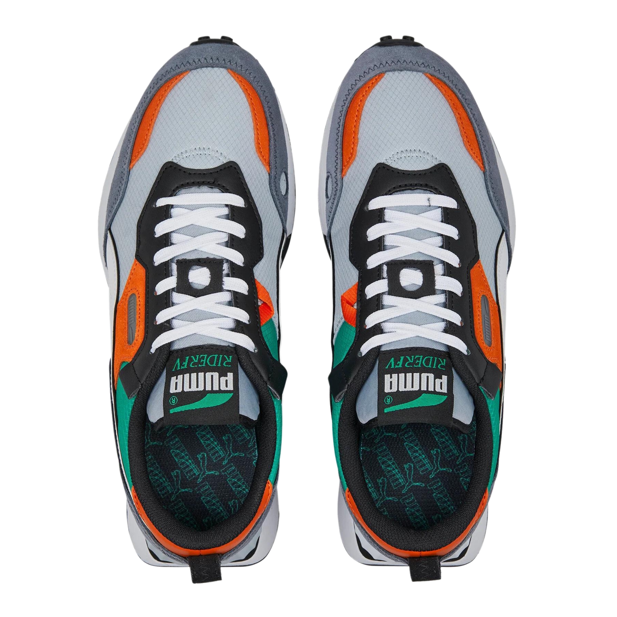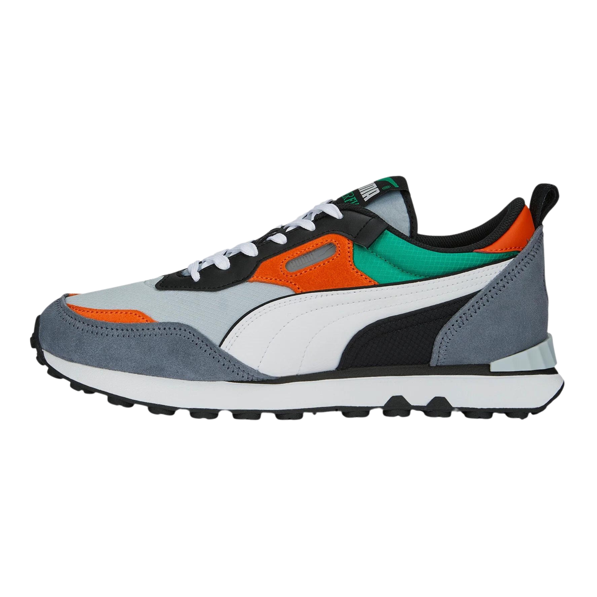 • Iconic Puma Branding: Featuring Puma’s signature Formstrip on the sides and a bold Puma logo on the tongue and heel, the Future Rider showcases the brand’s legendary style. The sporty branding enhances the sneaker’s athletic aesthetic, making it a true icon of modern streetwear.