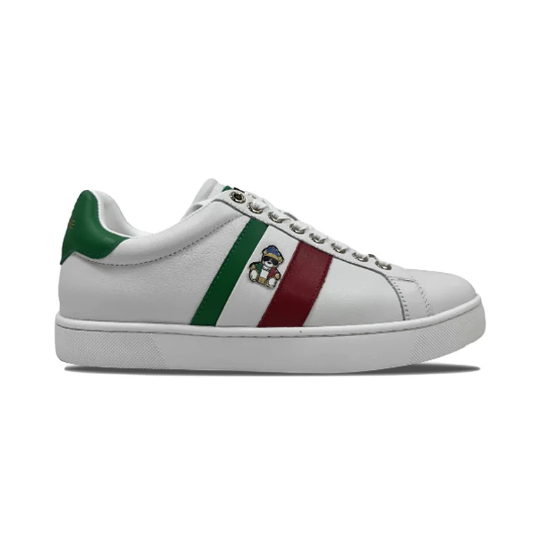 The Vialli Socrato Sneaker from our Summer collection offers a sleek low-cut design with secure lace-up eyelets. Showcasing the Italian colors on the sides and back, it features the signature teddy icon on the side for a distinctive touch. The hexagonal patterned outsole ensures reliable grip, while the iconic “Bear with me” text at the heel adds a unique statement. Crafted for style and comfort, this sneaker blends heritage and modern design seamlessly.
