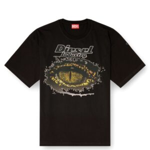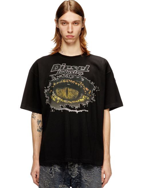 Cotton T-shirt with short sleeves and a relaxed fit crew neck. Features a digital print depicting a crocodile eye on the front and has an Oval D logo embroidery on the left sleeve.
