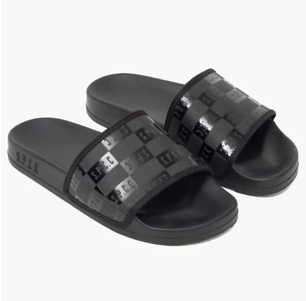Step into comfort and style with the Dermott Sliders. Featuring a PVC molded upper strap adorned with SPCC monogram logos, these sliders showcase the SPCC logo on the lateral sides. The robust EVA sole provides excellent support and durability, complete with SPCC branding on the underside for a signature touch.